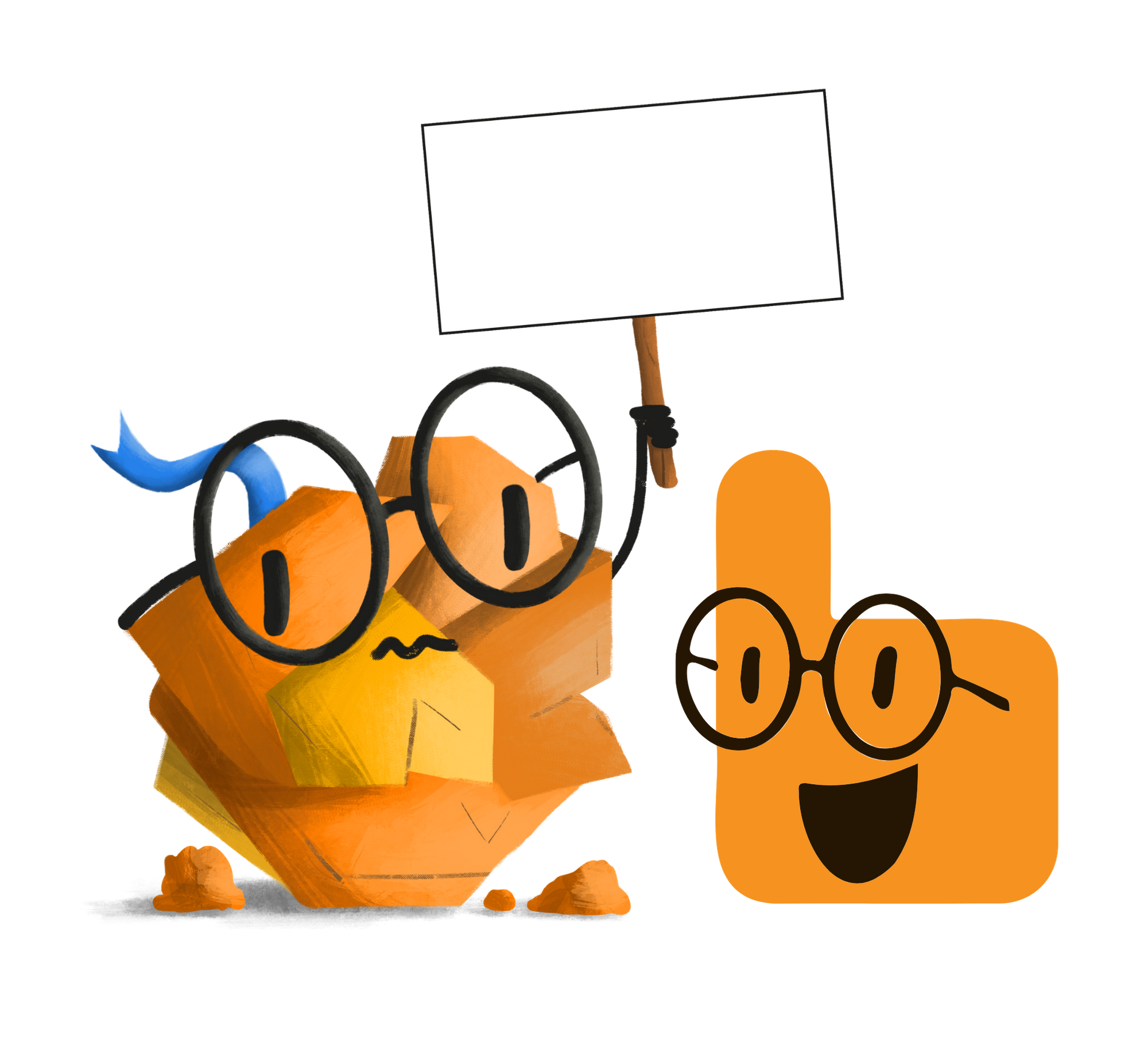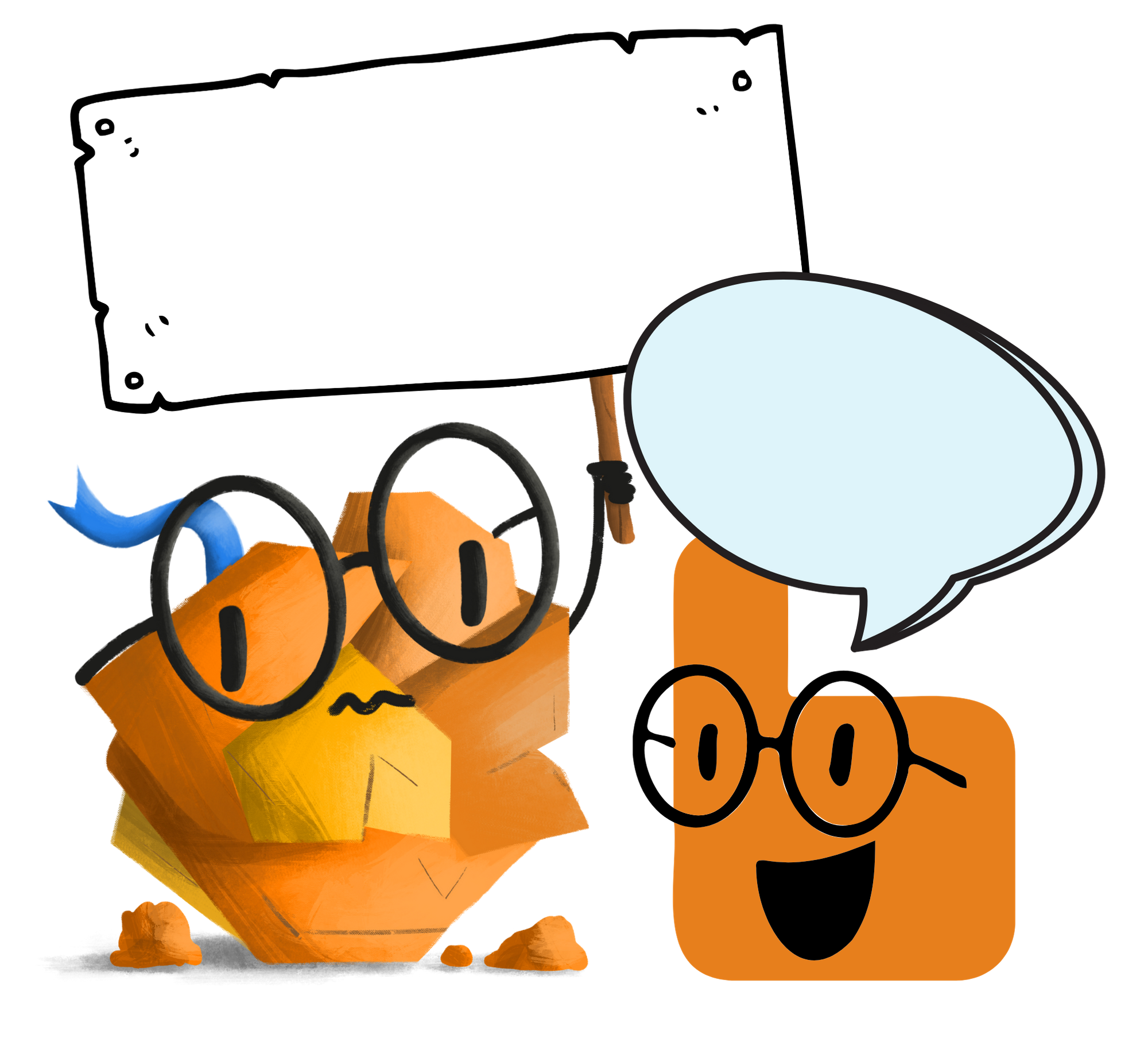Source : Myriam Thomas pour la déclinaison du Dicoo de gauche (fichier original : File:Dicoo erreur 404.png) et les yeux, la bouche et les lunettes de celui de droite (fichier original : File:Dicoo bienvenue.png). Reste du travail par Vivian.